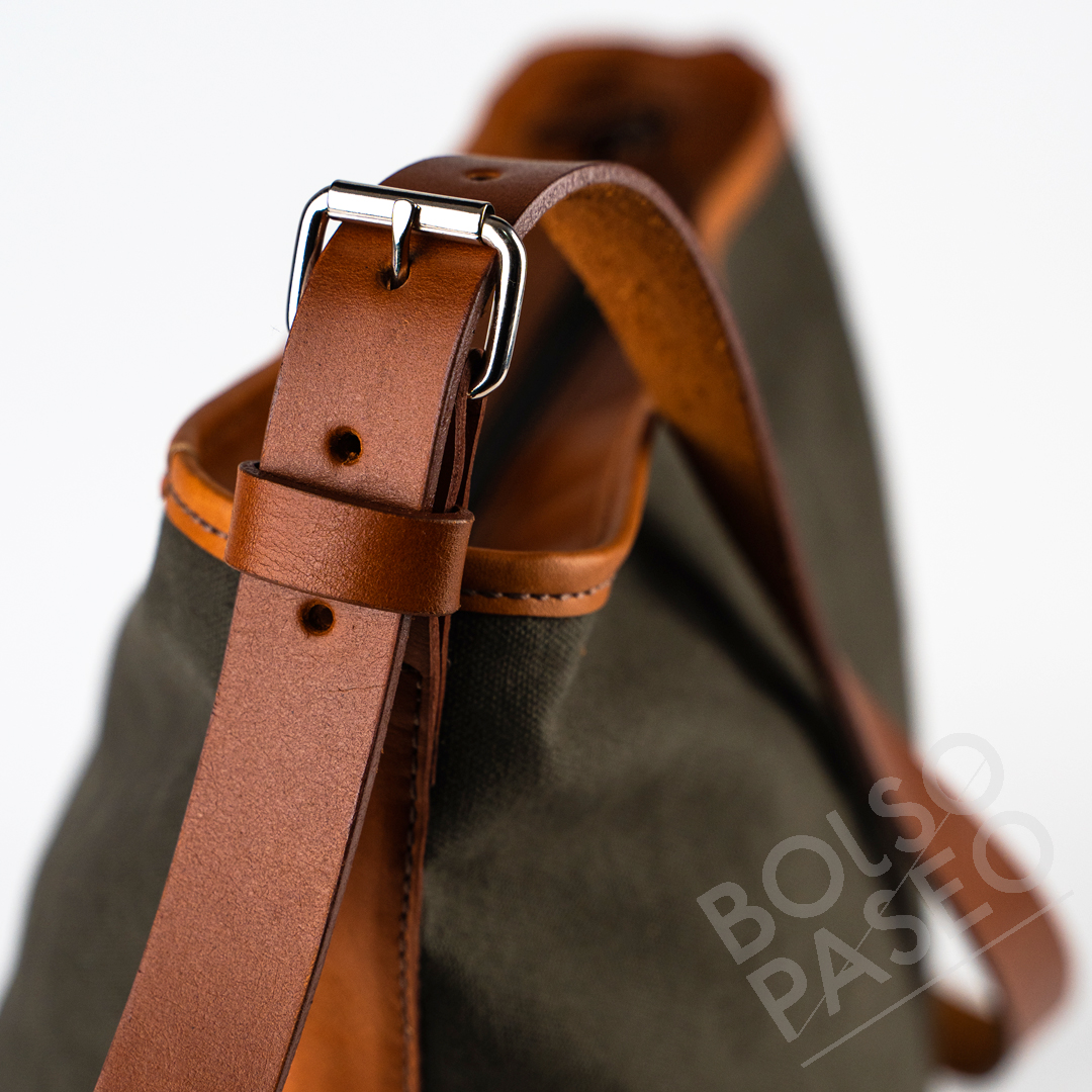 • Esta fabricado con tela de algodón y detalles de cuero vacuno.